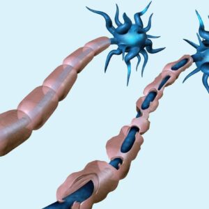 ‘Omdat zenuwcellen, in tegenstelling tot andere cellen, niet delen. Dus als ze ontstoken raken, gaan ze stuk, en dat geldt dan ook voor de verbindingen die ze in de hersenen hebben aangelegd. Dat betekent dat bepaalde functies gaan haperen. Bij MS, een ontstekingsziekte in de hersenen, uit zich dat bijvoorbeeld in moeheid, coördinatiestoornissen, problemen met lopen en zien, en een verminderde concentratie.’