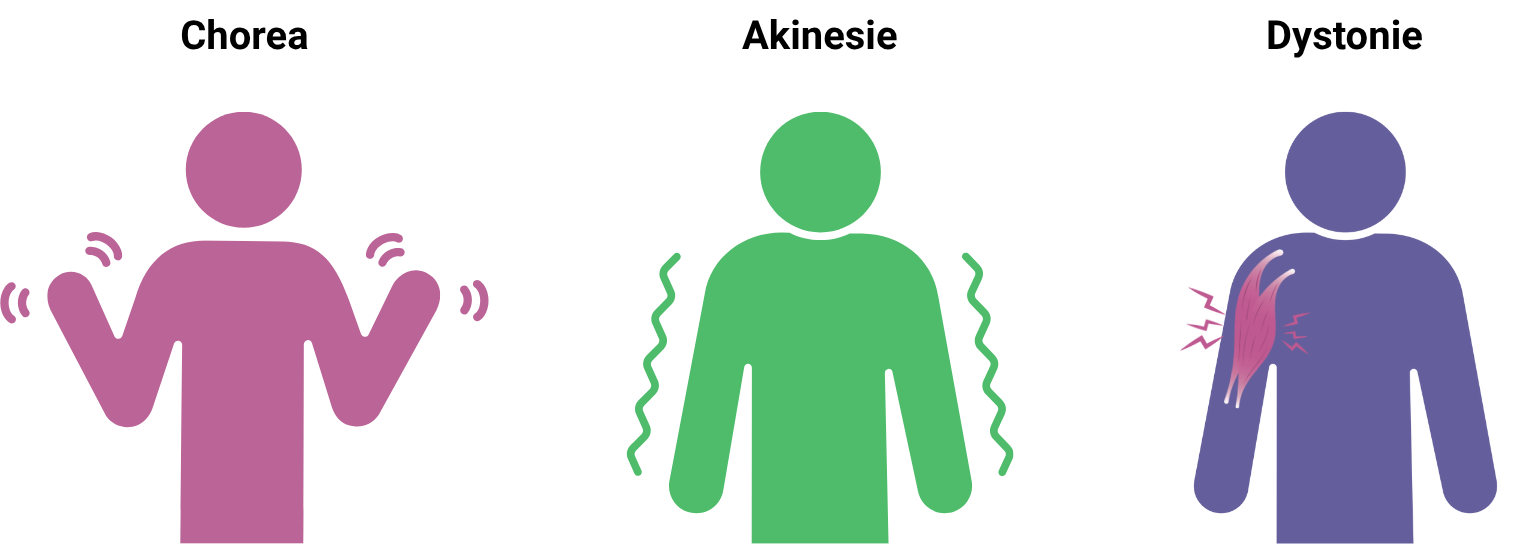 De ziekte van Huntington wordt vaak gekenmerkt door ongewilde bewegingen, ook wel chorea genoemd. Deze bewegingen beginnen meestal in het gezicht, de armen of de benen. In het begin zijn ze klein en subtiel, maar naarmate de ziekte vordert, worden ze krachtiger en groter. Uiteindelijk kunnen ook het hoofd en de romp ongecontroleerd gaan bewegen, wat het uitvoeren van dagelijkse handelingen moeilijk maakt.